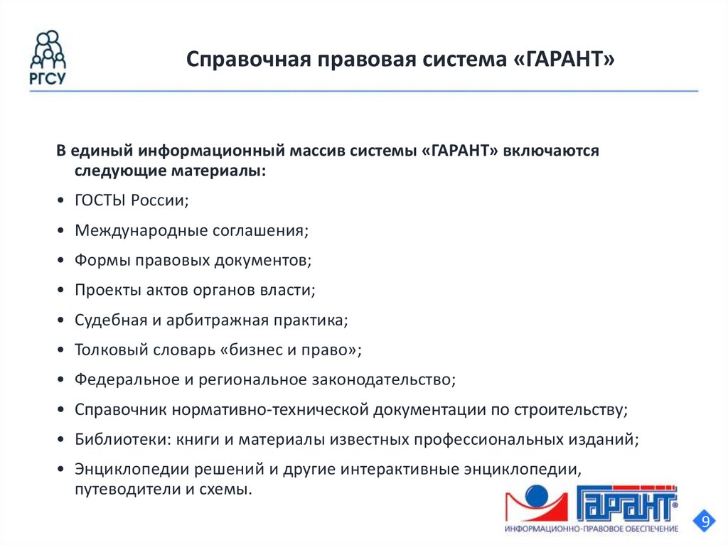 Справочная правовая система «ГАРАНТ»В единый информационный массив системы «ГАРАНТ» включаются