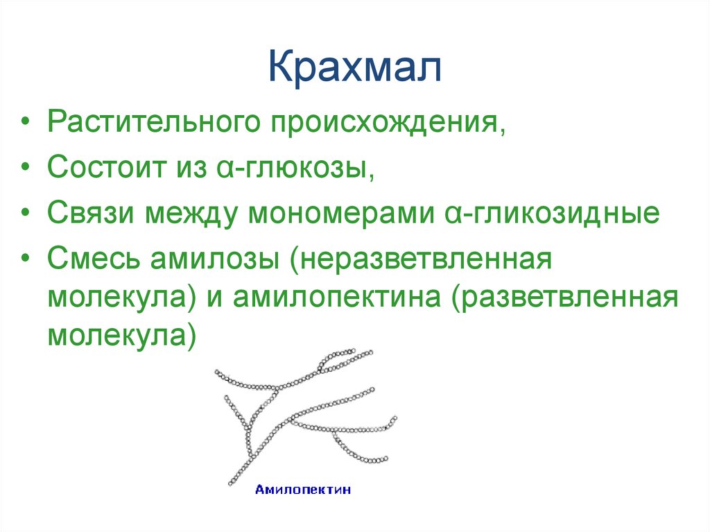 • Растительного происхождения,• Состоит из α-глюкозы,