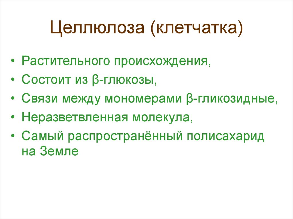 • Растительного происхождения,• Состоит из β-глюкозы,