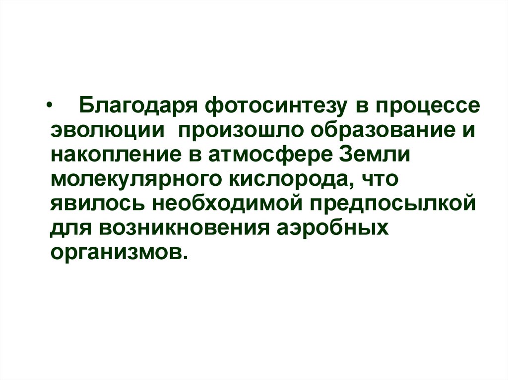 • Благодаря фотосинтезу в процессеэволюции произошло образование и
