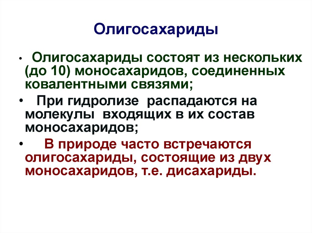 Олигосахариды состоят из нескольких(до 10) моносахаридов, соединенных
