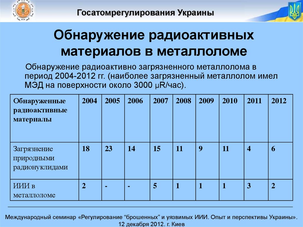 Госатомрегулирования УкраиныОбращение с металлоломом в случае