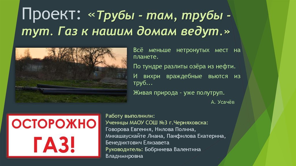Проект: «Трубы - там, трубы тут. Газ к нашим домам ведут.»Всё меньше нетронутых мест на