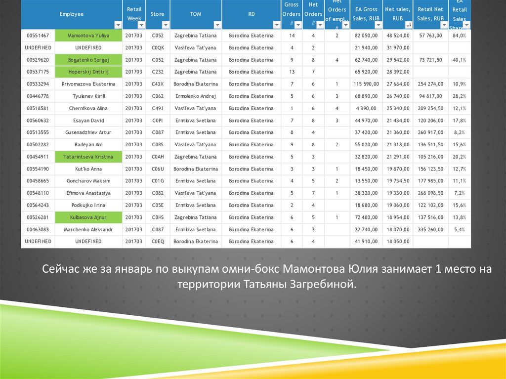 Сейчас же за январь по выкупам омни-бокс Мамонтова Юлия занимает 1 место на