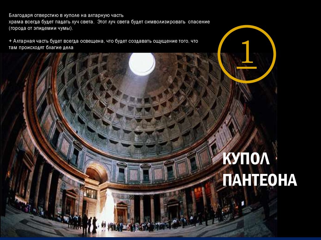 Благодаря отверстию в куполе на алтарную частьхрама всегда будет падать луч света. Этот луч света будет символизировать спасение