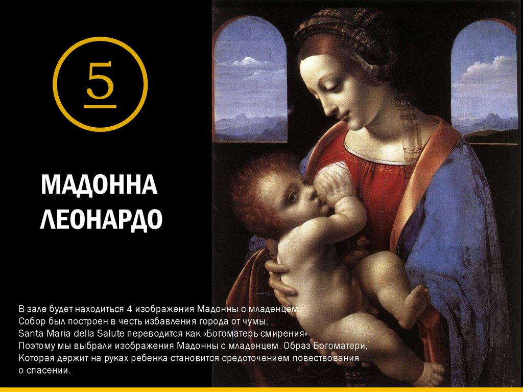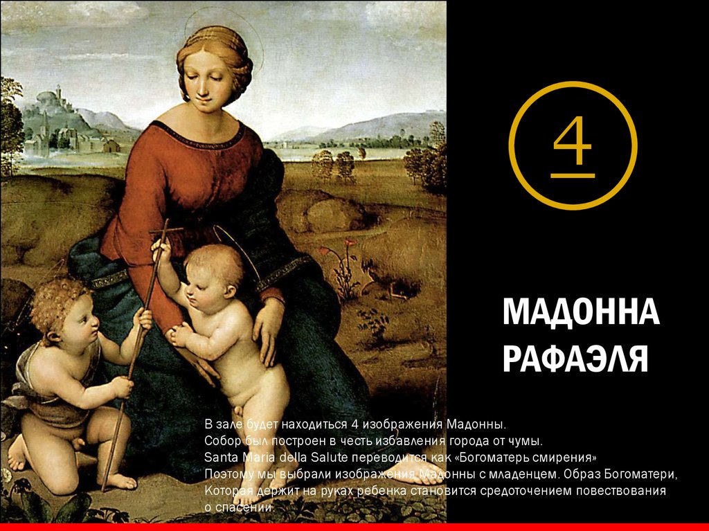 В зале будет находиться 4 изображения Мадонны с младенцем.