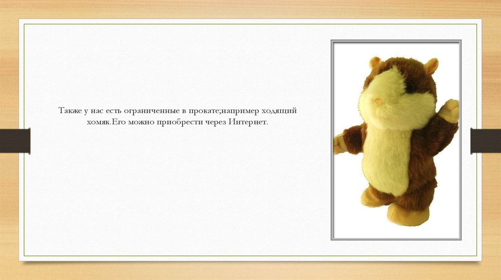 Также у нас есть ограниченные в прокате;например ходящийхомяк.Его можно приобрести через Интернет.