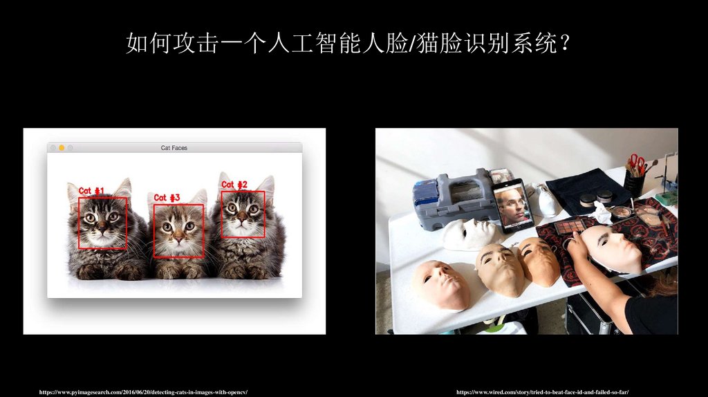 如何攻击⼀个⼈工智能人脸/猫脸识别系统https://www.pyimagesearch.com/2016/06/20/detecting-cats-in-images-with-opencv/