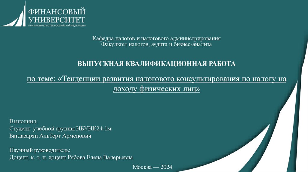 Кафедра налогов и налогового администрированияФакультет налогов, аудита и бизнес-анализа