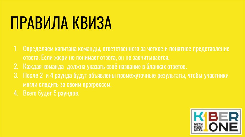 ПРАВИЛА КВИЗА1. Определяем капитана команды, ответственного за четкое и понятное представление