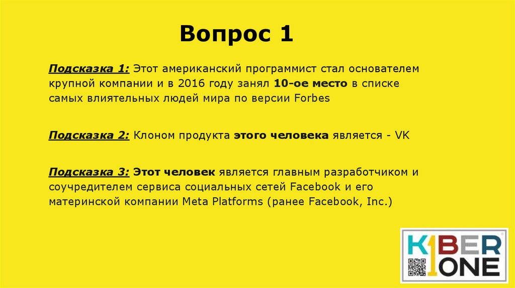 Вопрос 1Подсказка 1: Этот американский программист стал основателем