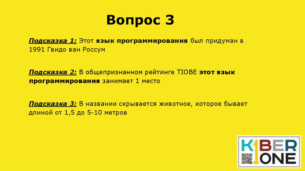 Вопрос 3Подсказка 1: Этот язык программирования был придуман в