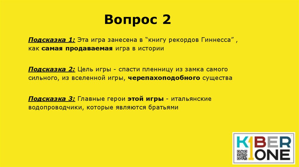 Вопрос 2Подсказка 1: Эта игра занесена в “книгу рекордов Гиннесса” ,