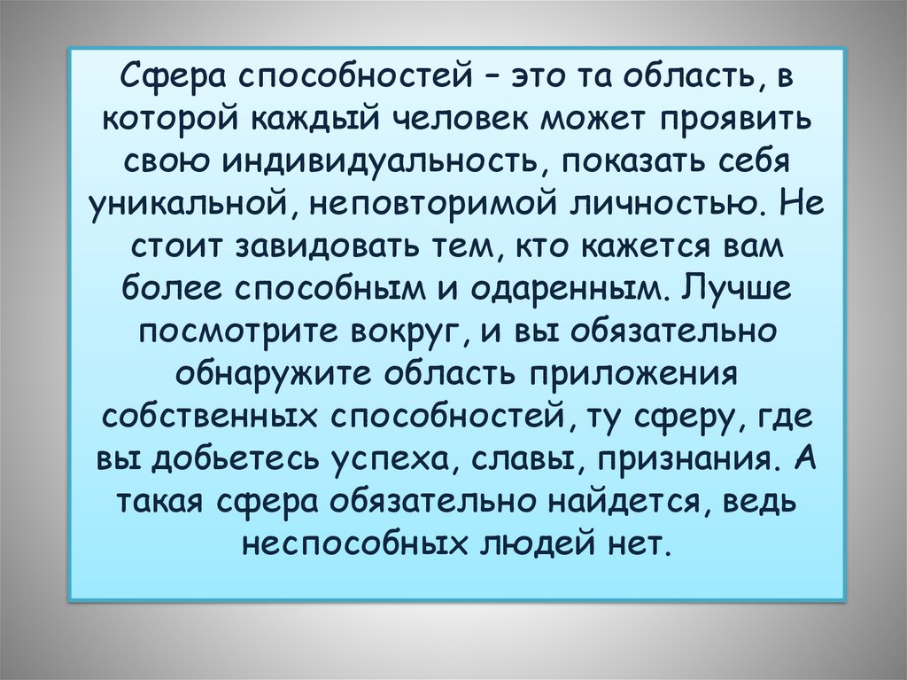 Сфера способностей – это та область, вкоторой каждый человек может проявить