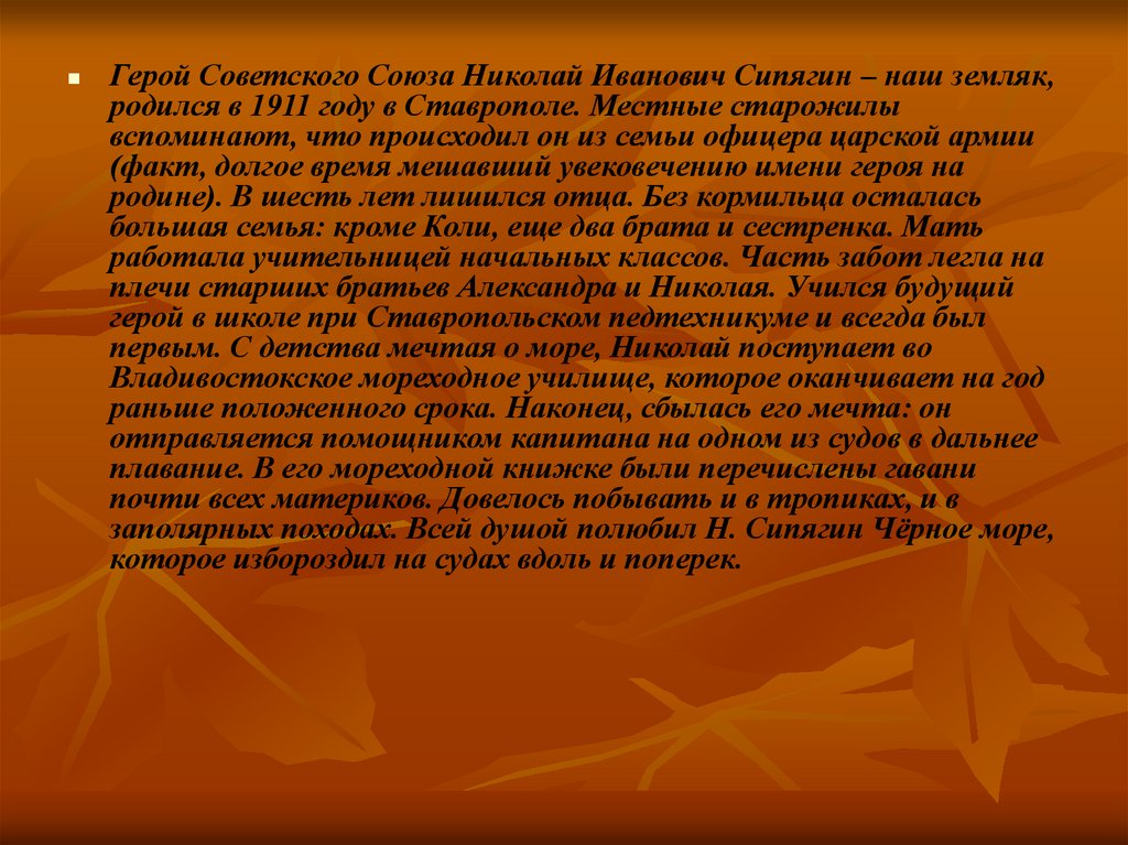 Герой Советского Союза Николай Иванович Сипягин – наш земляк,родился в 1911 году в Ставрополе. Местные старожилы