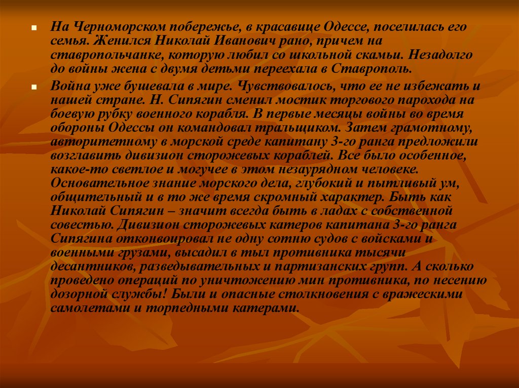 На Черноморском побережье, в красавице Одессе, поселилась егосемья. Женился Николай Иванович рано, причем на