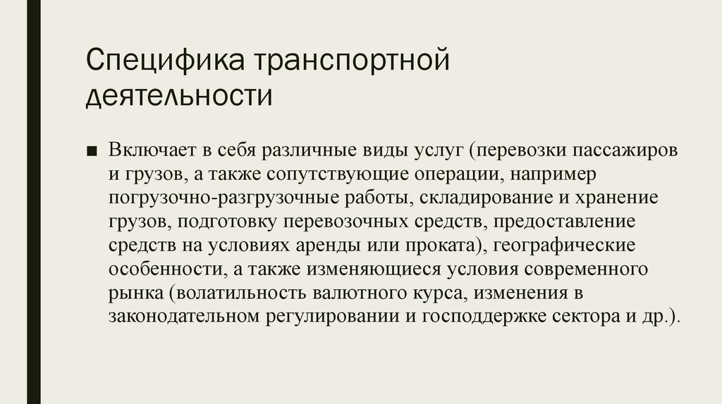 ■ Включает в себя различные виды услуг (перевозки пассажиров