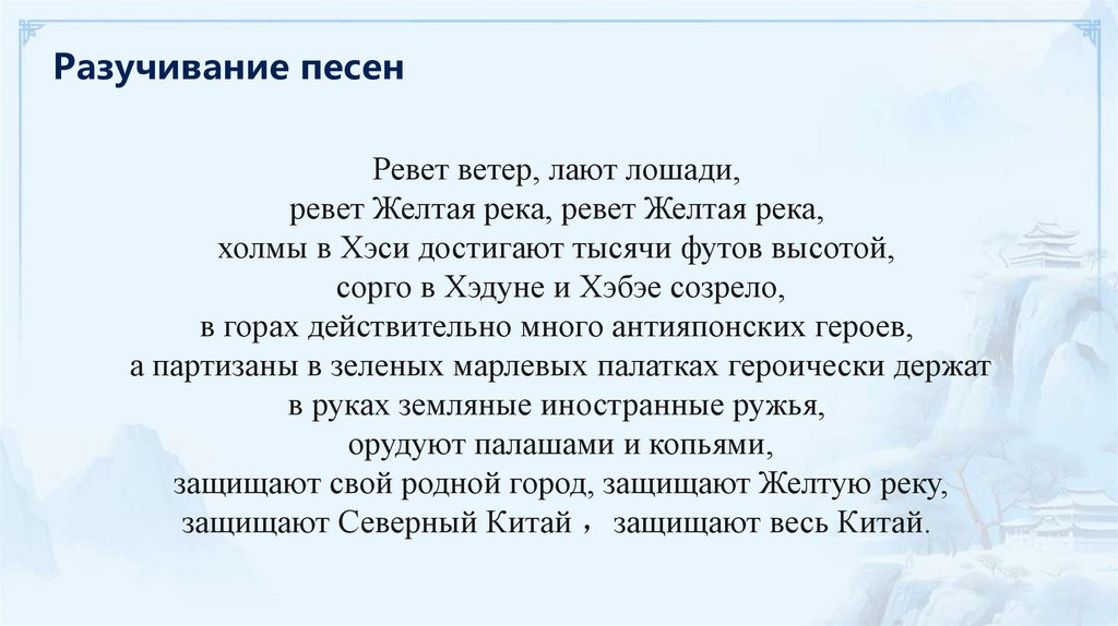 Анализ песен«Защищая Желтую реку» — седьмая часть «Кантаты
