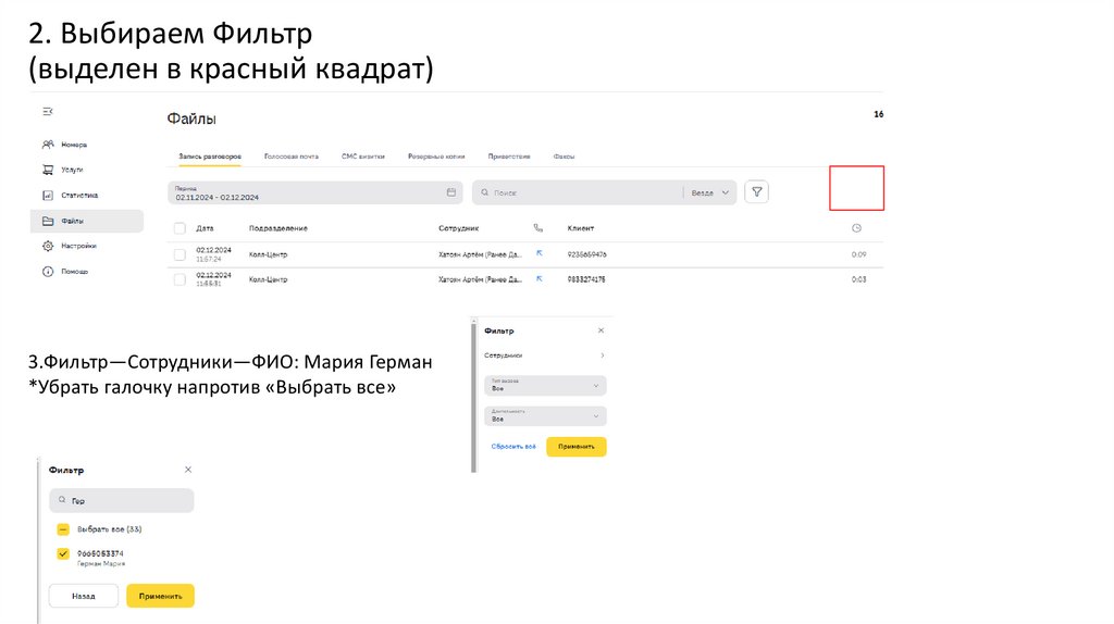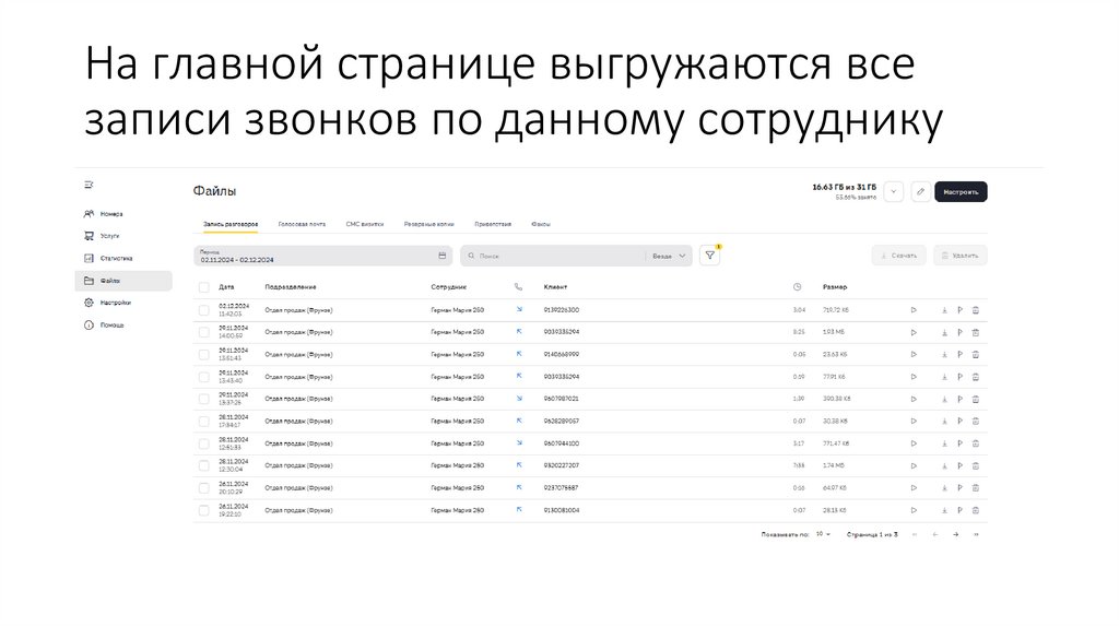 На главной странице выгружаются всезаписи звонков по данному сотруднику