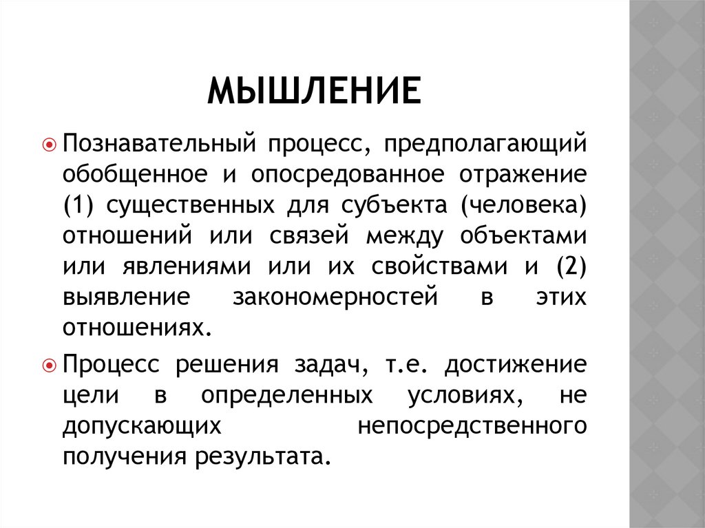 МЫШЛЕНИЕПознавательный процесс, предполагающий