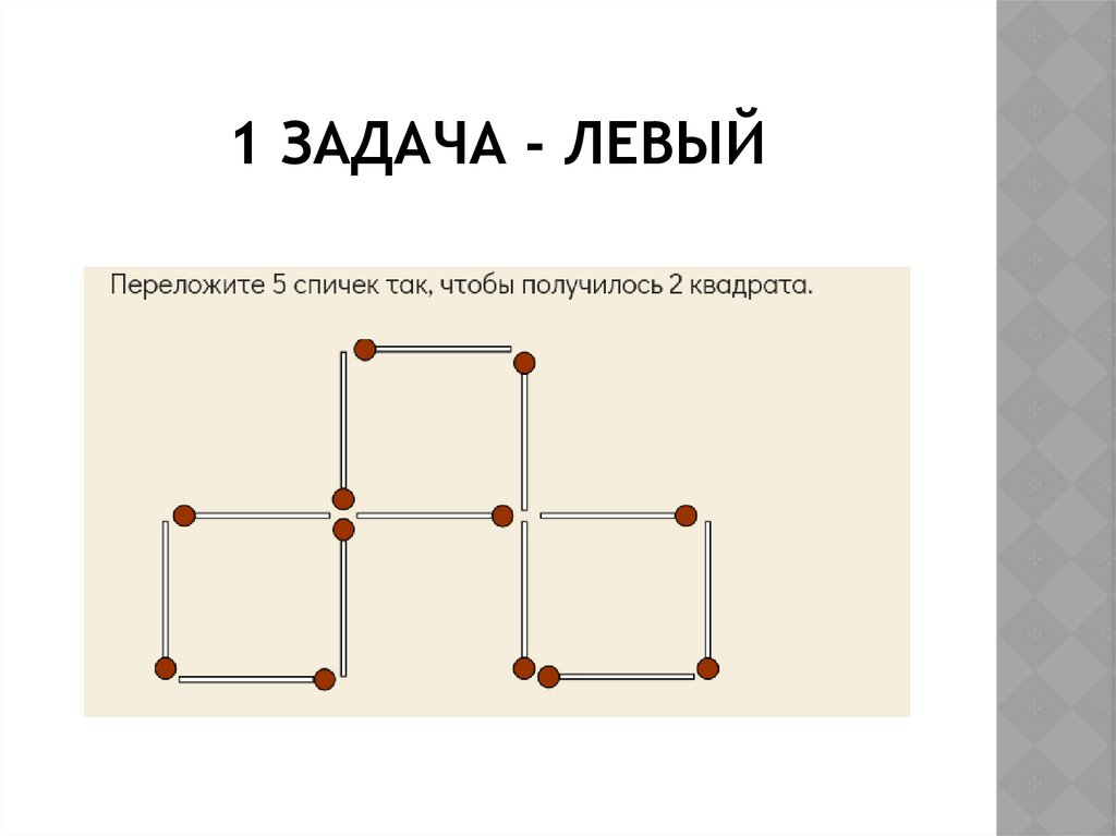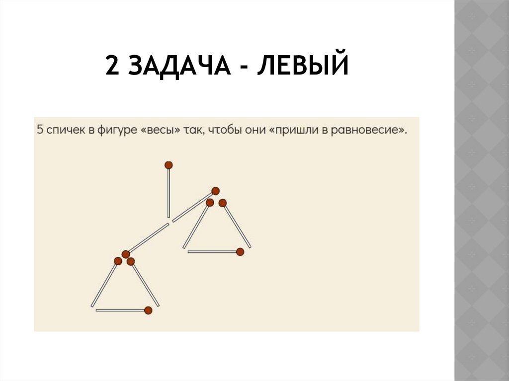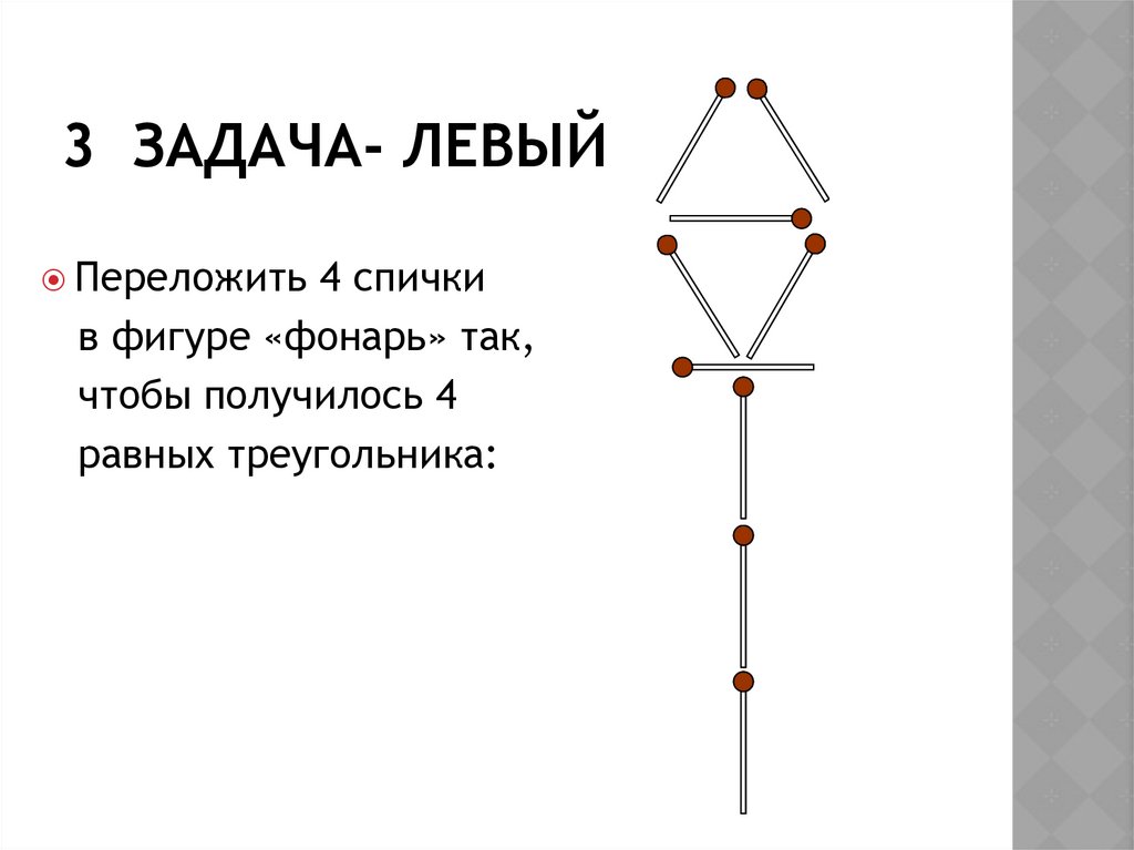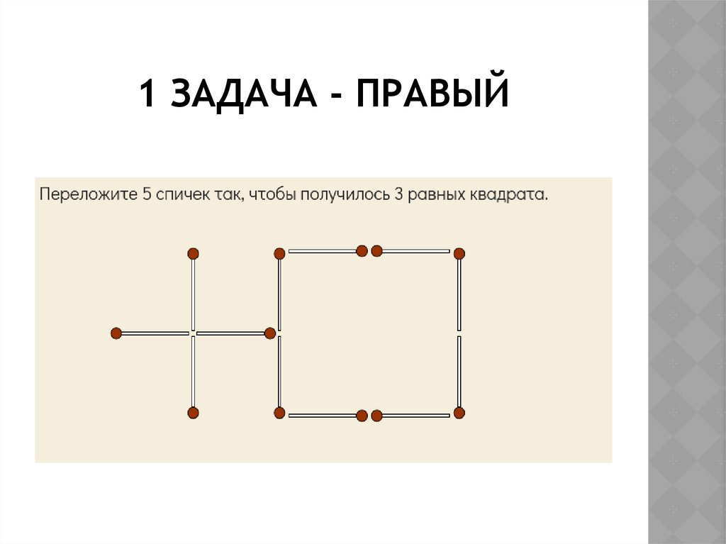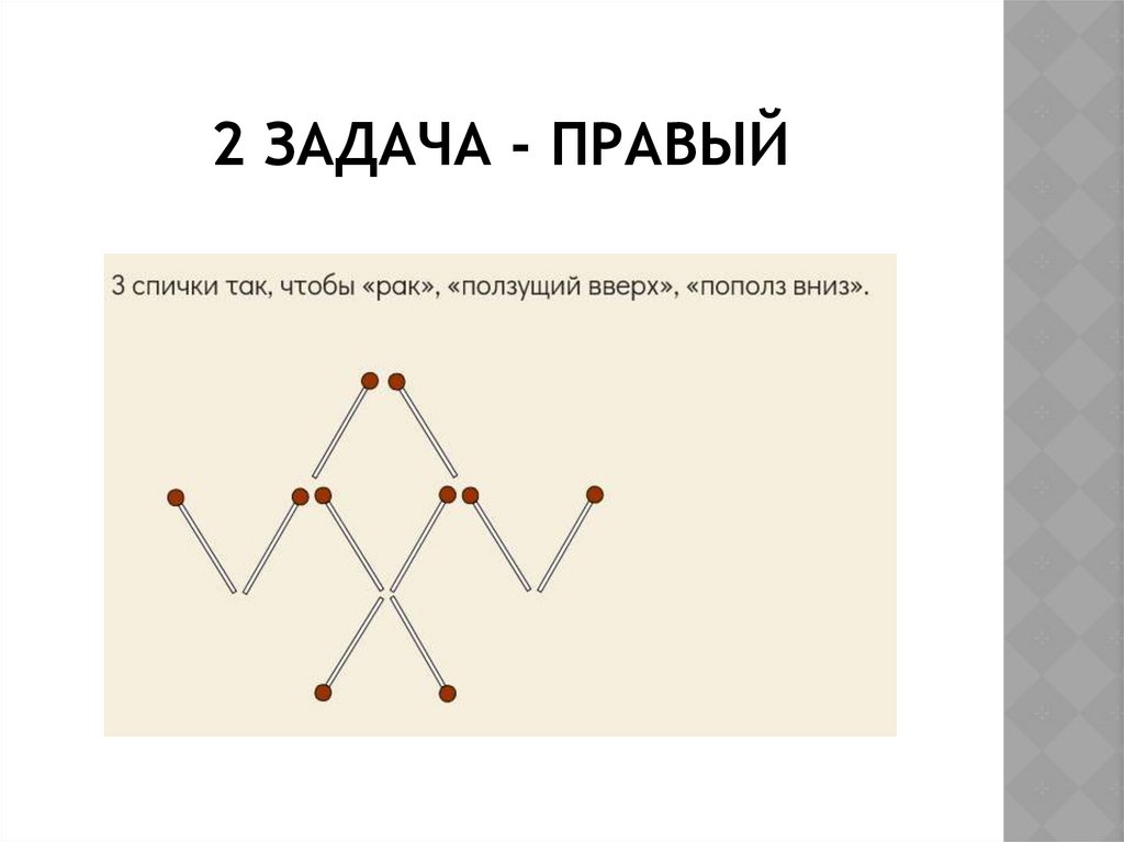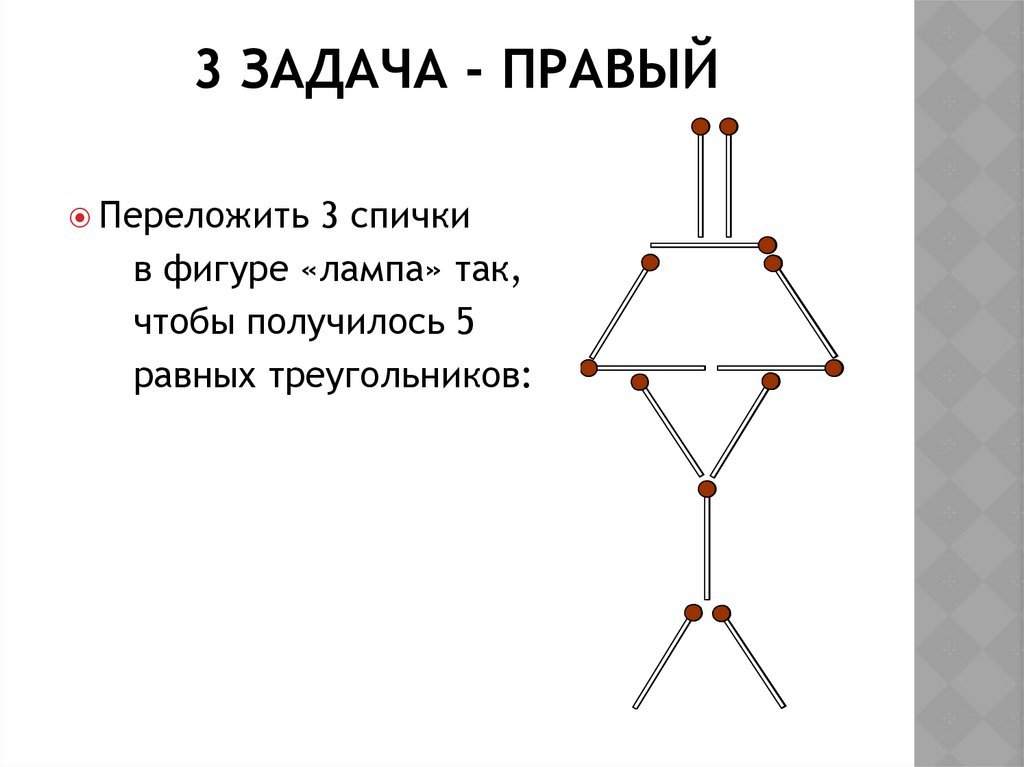 3 ЗАДАЧА - ПРАВЫЙПереложить 3 спички