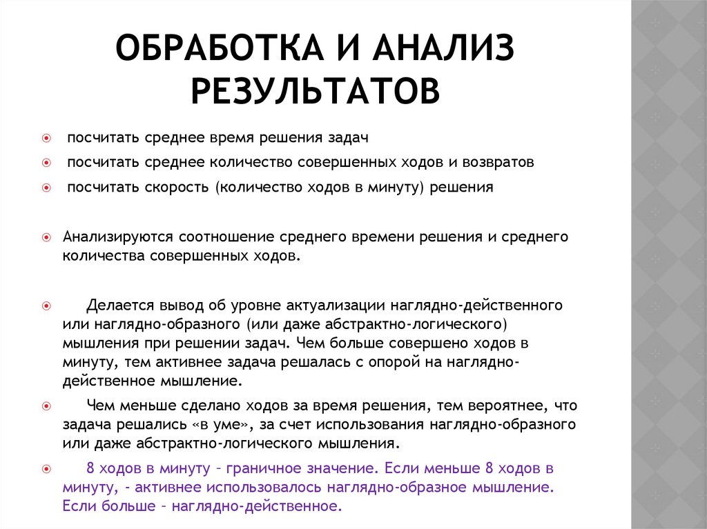 минуту, тем активнее задача решалась с опорой на нагляднодейственное мышление.