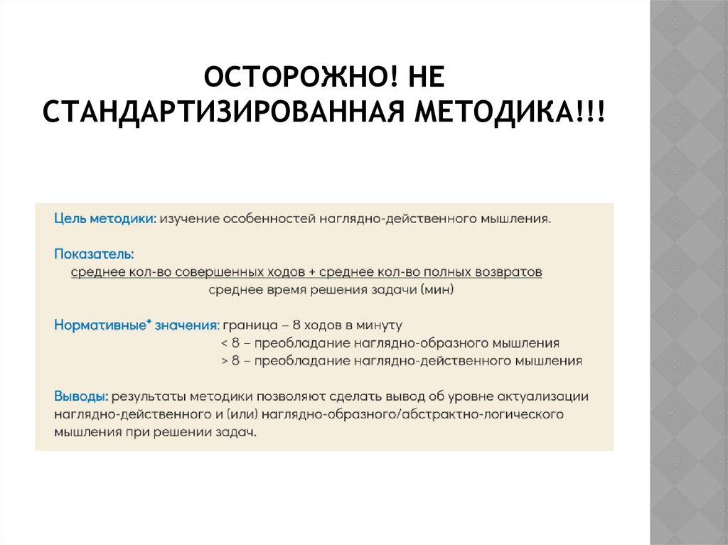ОСТОРОЖНО! НЕСТАНДАРТИЗИРОВАННАЯ МЕТОДИКА!!!