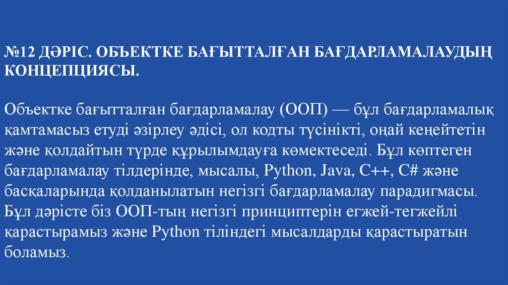 №12 ДӘРІС. ОБЪЕКТКЕ БАҒЫТТАЛҒАН БАҒДАРЛАМАЛАУДЫҢКОНЦЕПЦИЯСЫ.