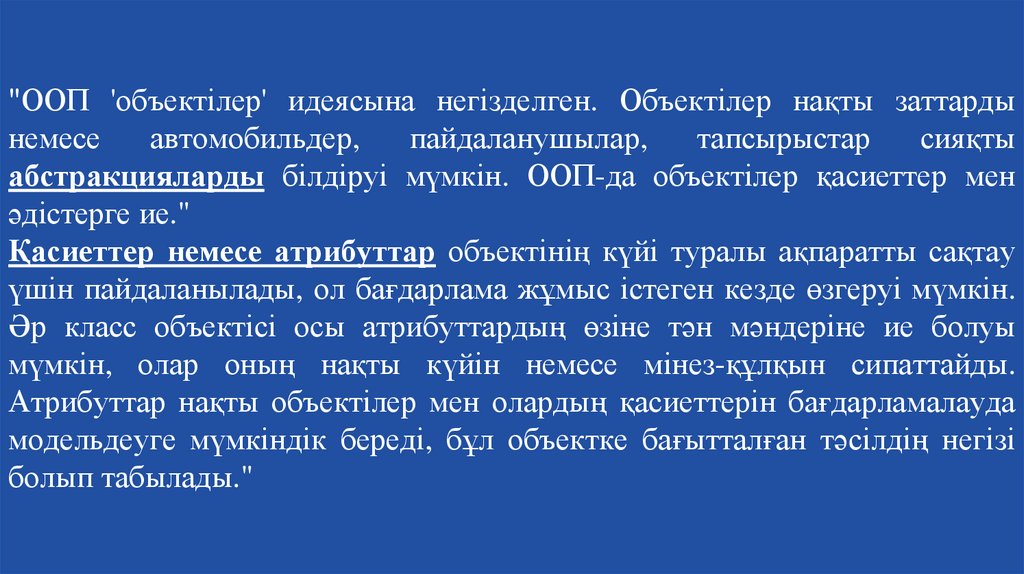 абстракцияларды білдіруі мүмкін. ООП-да объектілер қасиеттер мен