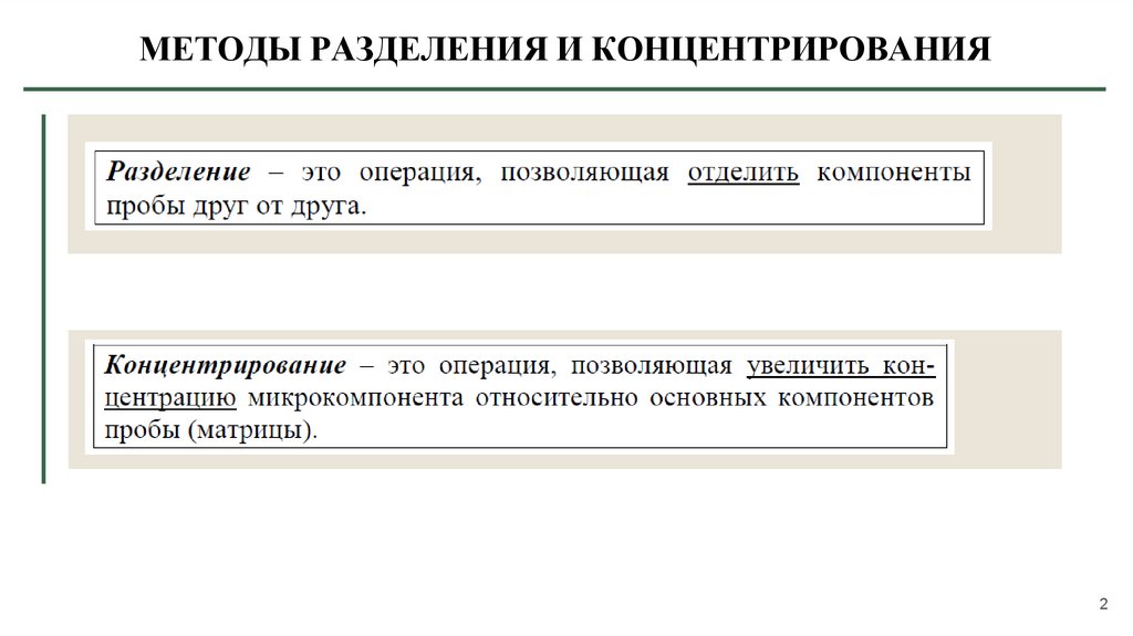 МЕТОДЫ РАЗДЕЛЕНИЯ И КОНЦЕНТРИРОВАНИЯ2