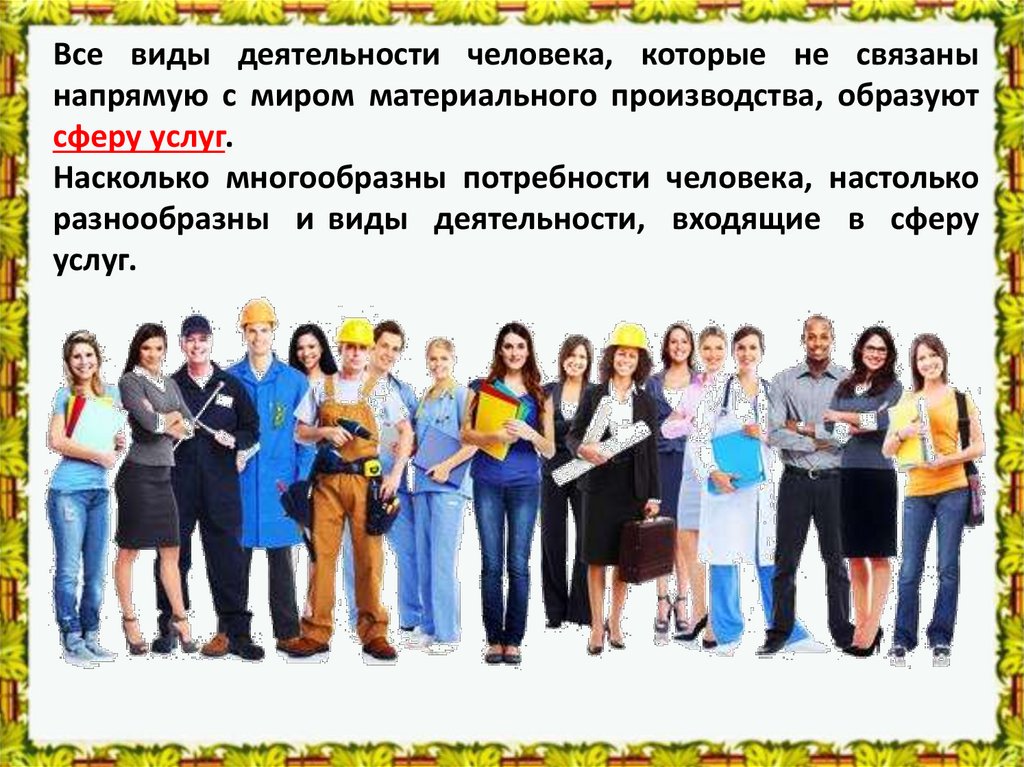 разнообразны и виды деятельности, входящие в сферу