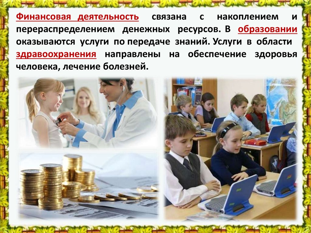 Финансовая деятельность связана с накоплением иперераспределением денежных ресурсов. В образовании