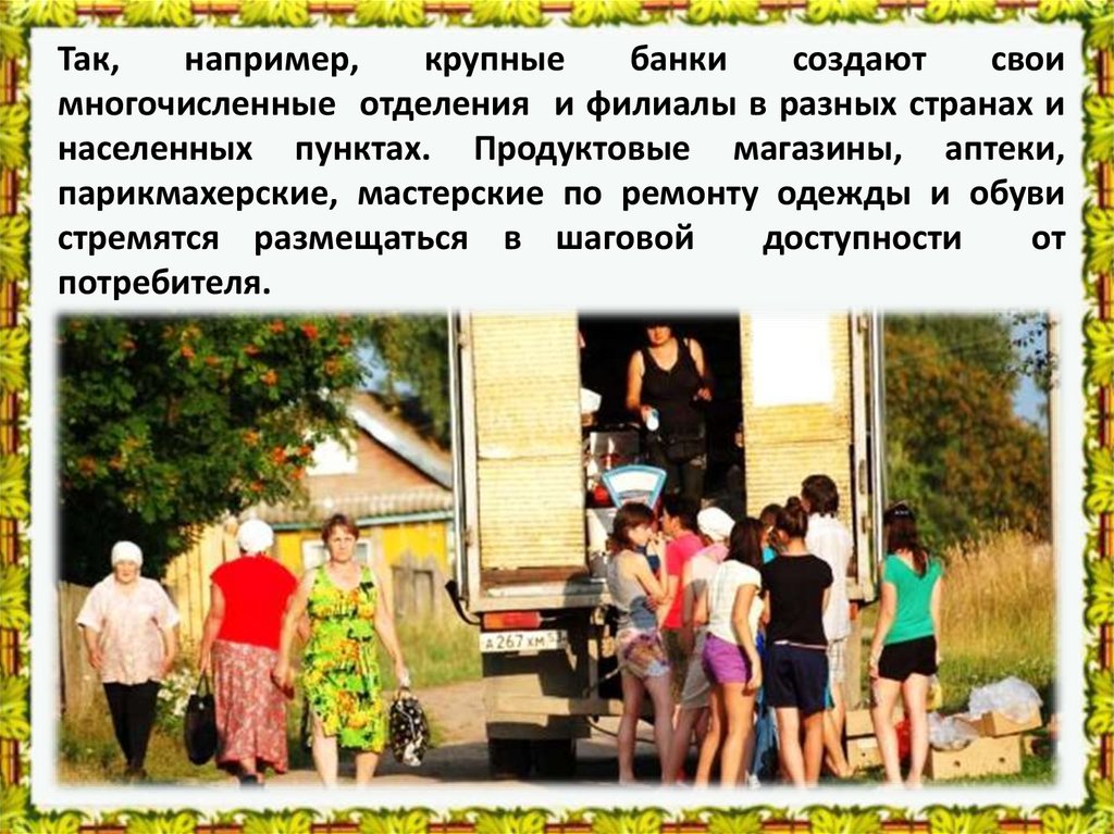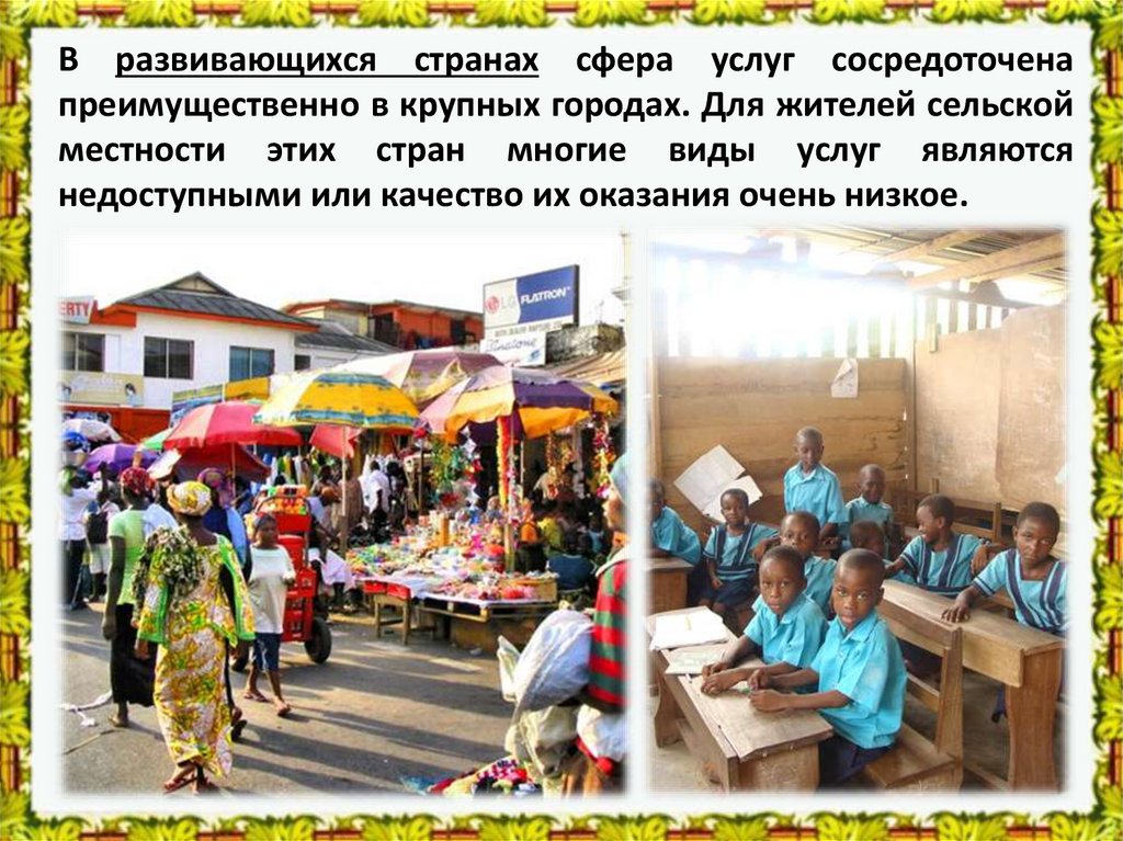 В развивающихся странах сфера услуг сосредоточенапреимущественно в крупных городах. Для жителей сельской