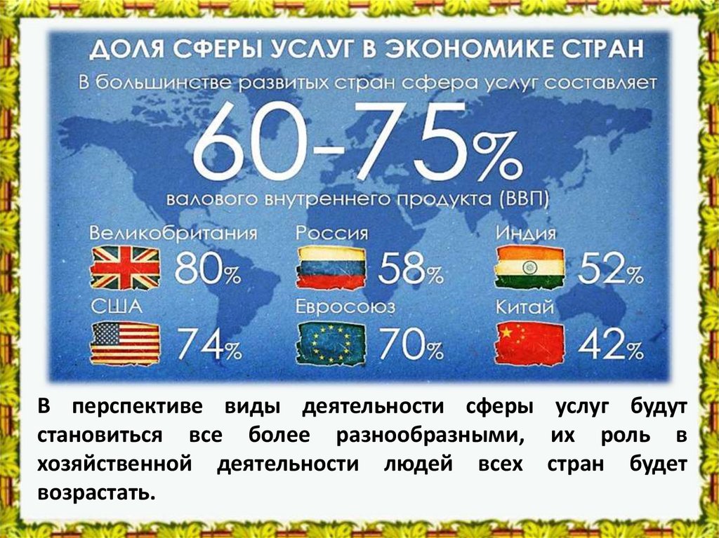 В перспективе виды деятельности сферы услуг будутстановиться все более разнообразными, их роль в