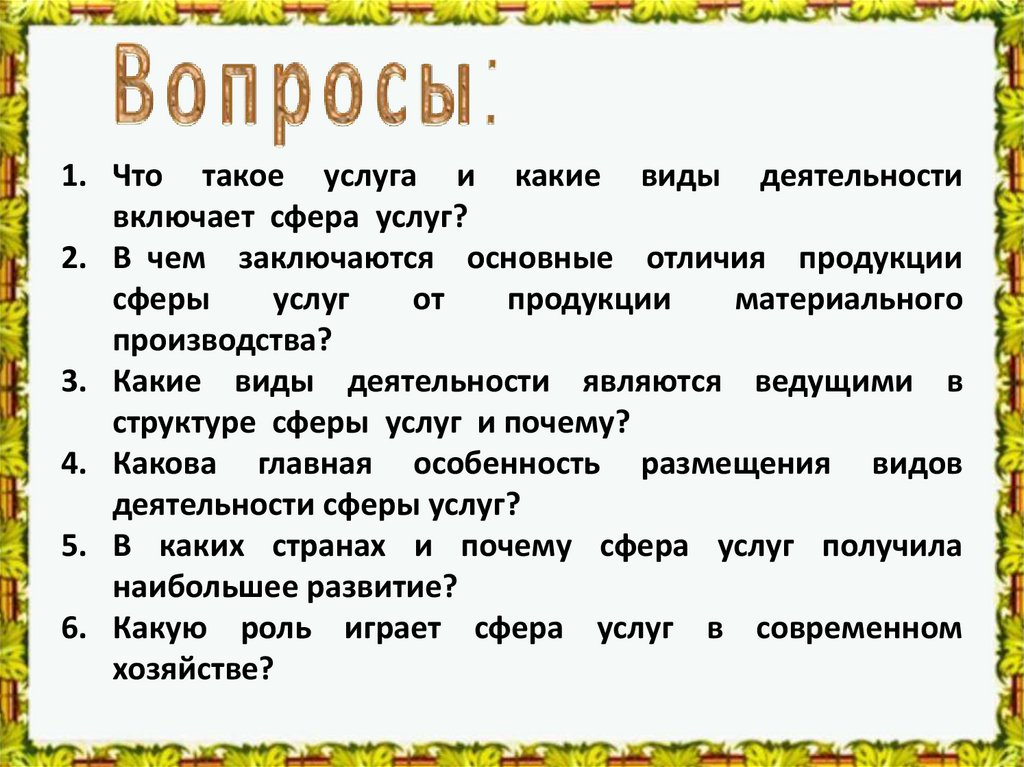6. Какую роль играет сфера услуг в современном