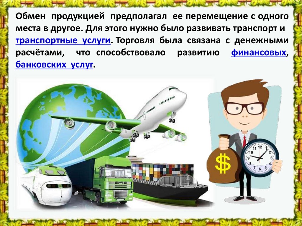 транспортные услуги. Торговля была связана с денежными
