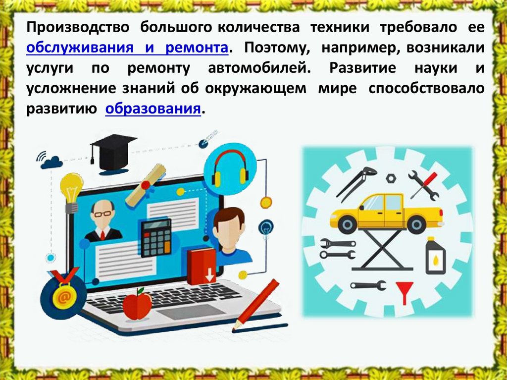 Производство большого количества техники требовало ееобслуживания и ремонта. Поэтому, например, возникали