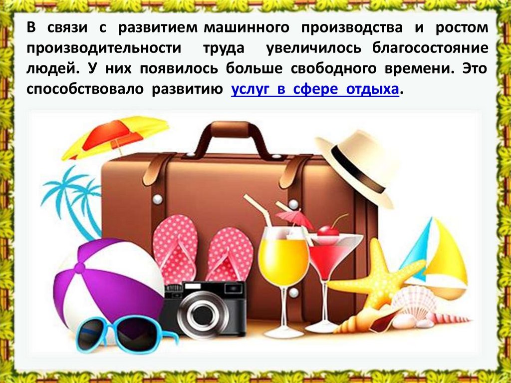 способствовало развитию услуг в сфере отдыха.