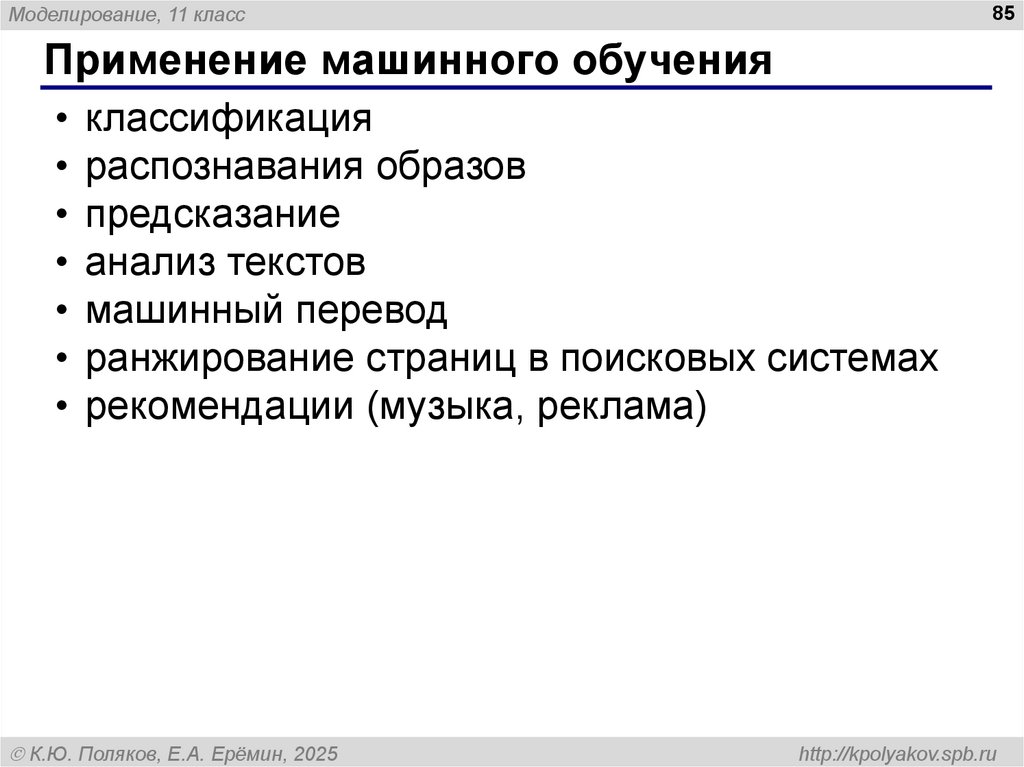 85. Применение машинного обучения