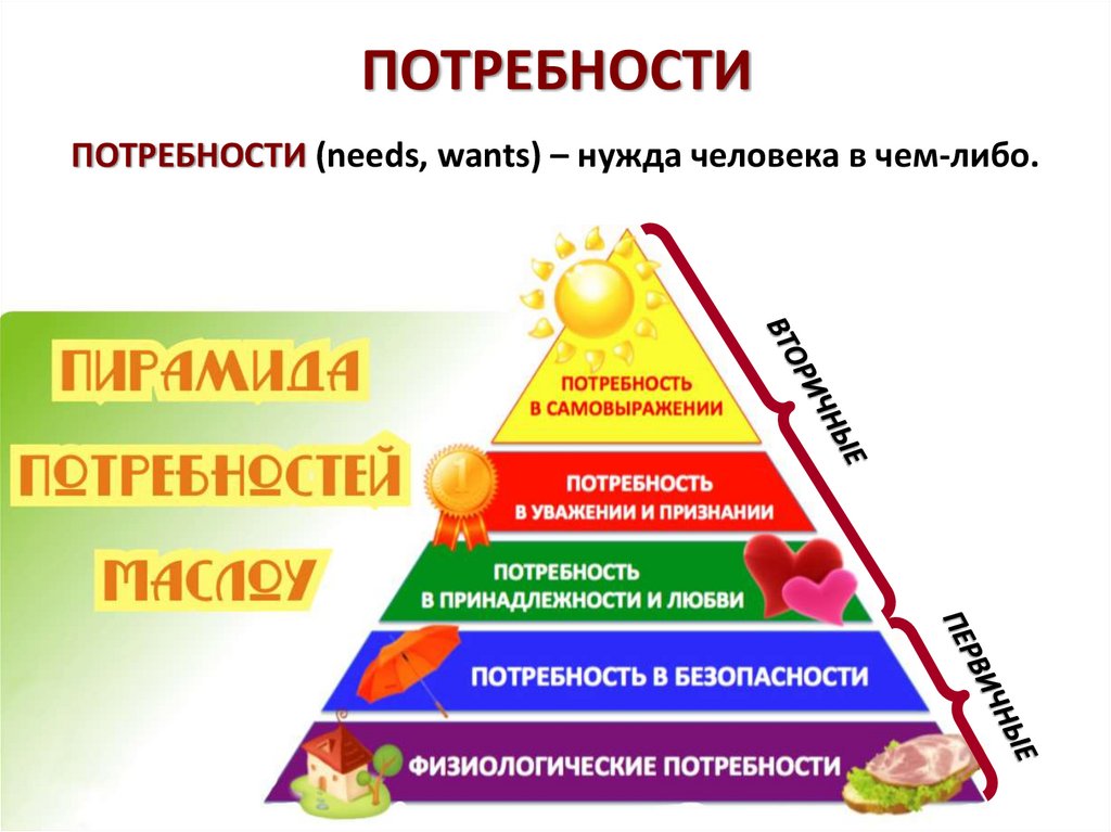 ПОТРЕБНОСТЬ (needs, wants) – нужда человека в чем-либо.