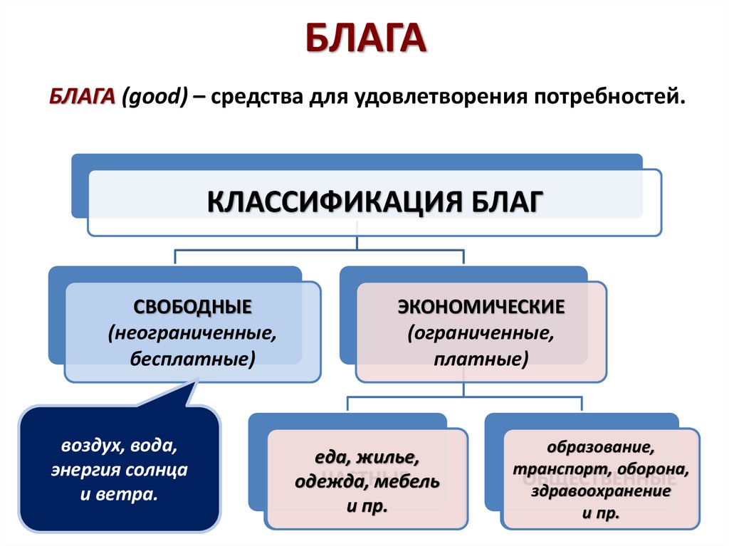 БЛАГО (good) – средства для удовлетворения потребностей.