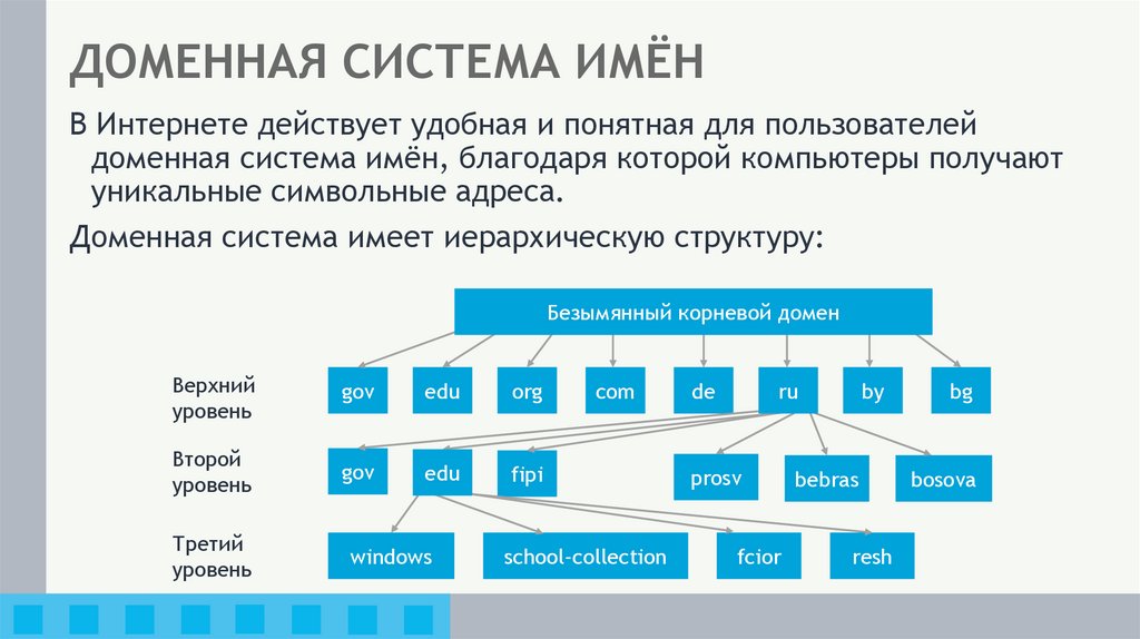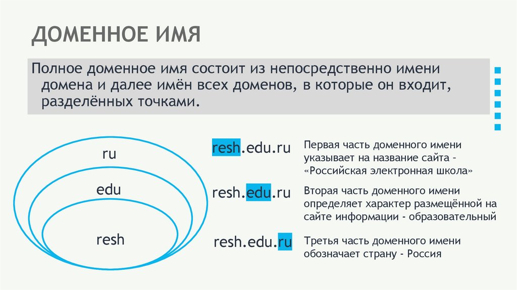 ДОМЕННОЕ ИМЯПолное доменное имя состоит из непосредственно имени