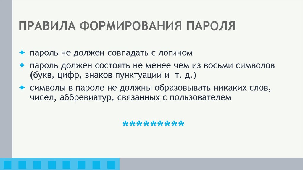 Пароль — это сочетание различных символов, подтверждающих, что логином