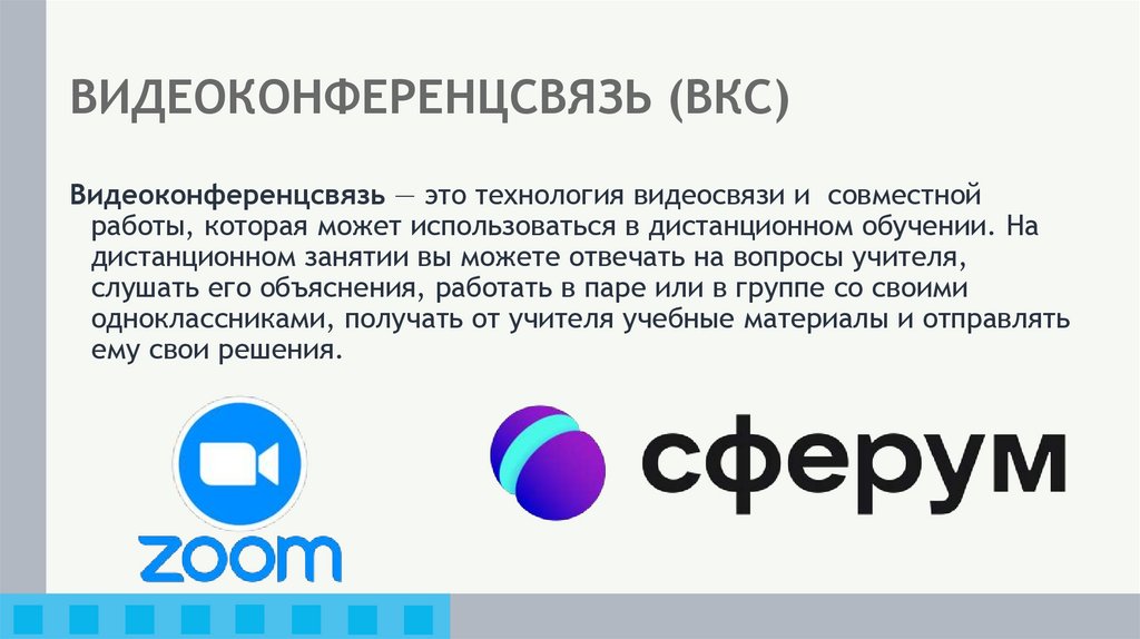ВИДЕОКОНФЕРЕНЦСВЯЗЬ (ВКС)Видеоконференцсвязь — это технология видеосвязи и совместной