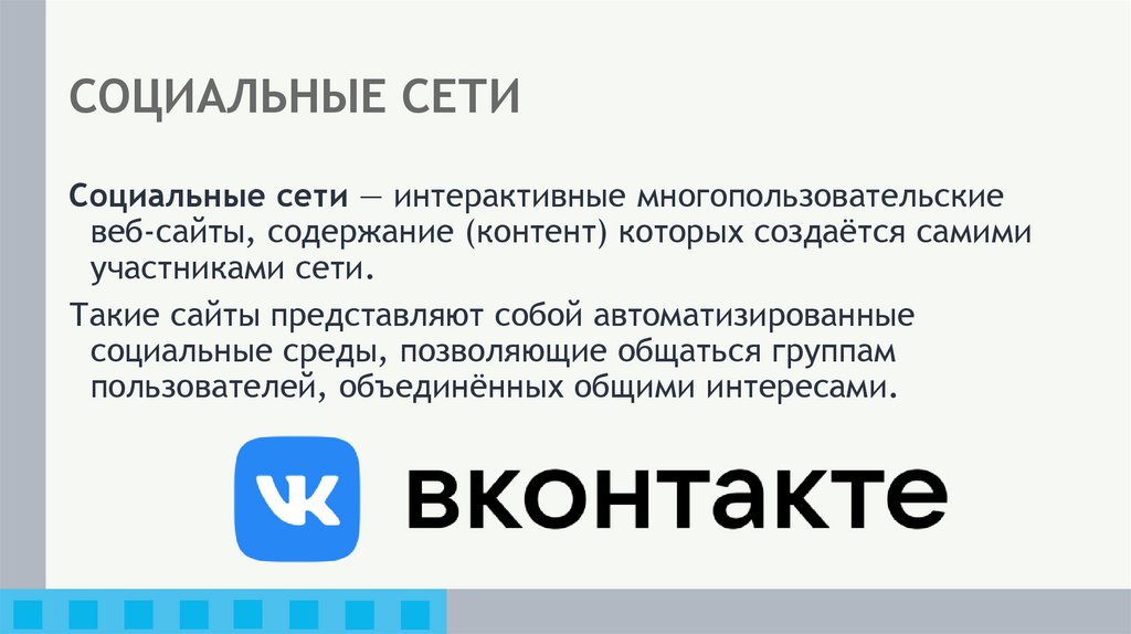 СОЦИАЛЬНЫЕ СЕТИСоциальные сети — интерактивные многопользовательские