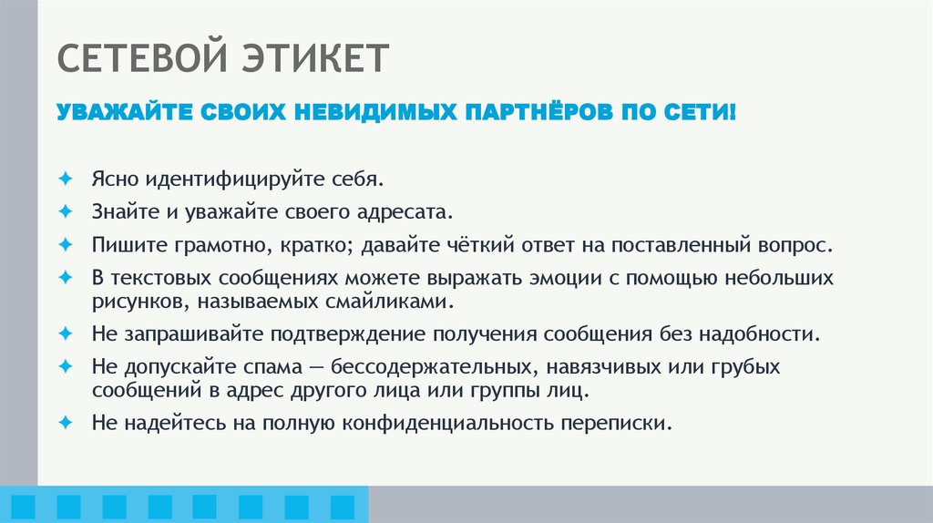 СЕТЕВОЙ ЭТИКЕТУВАЖАЙТЕ СВОИХ НЕВИДИМЫХ ПАРТНЁРОВ ПО СЕТИ!
