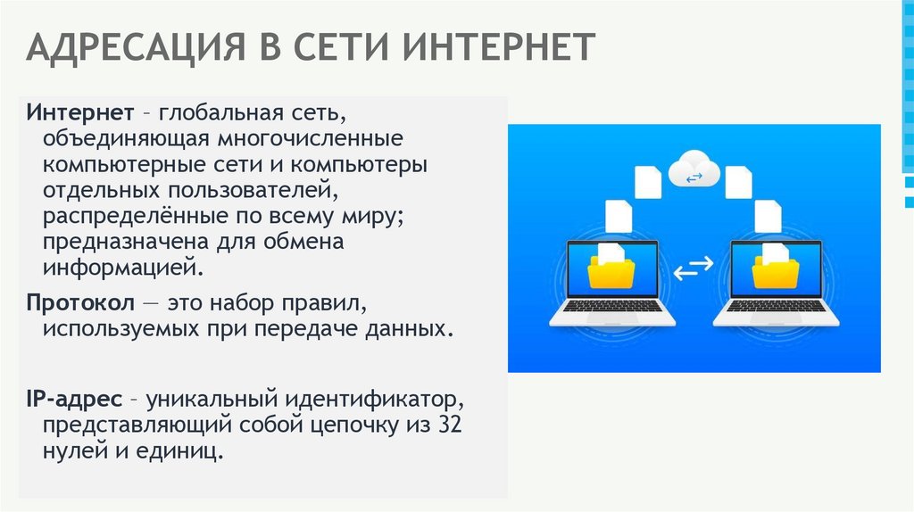 АДРЕСАЦИЯ В СЕТИ ИНТЕРНЕТИнтернет – глобальная сеть,
