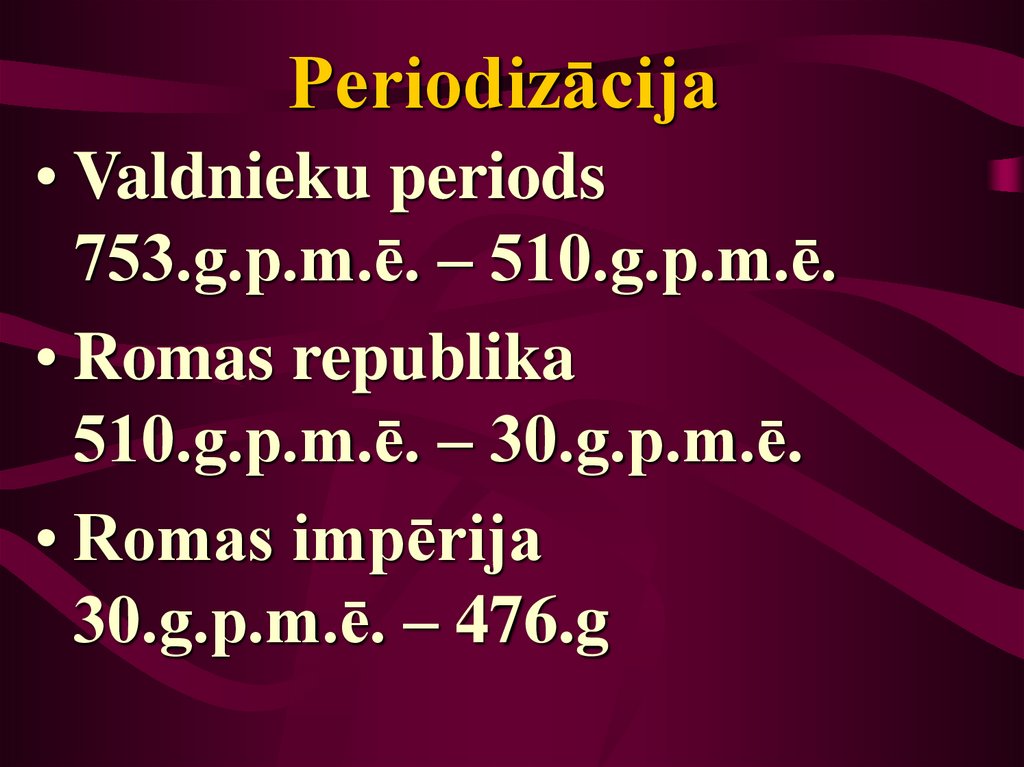 • Valdnieku periods753.g.p.m.ē. – 510.g.p.m.ē.