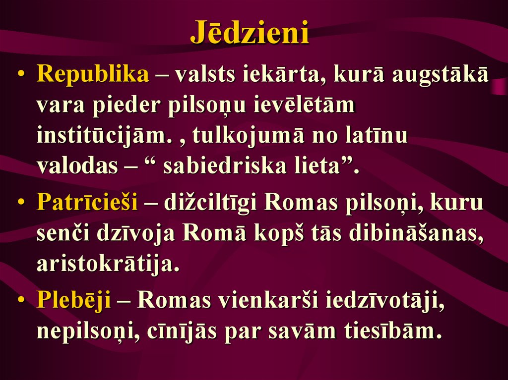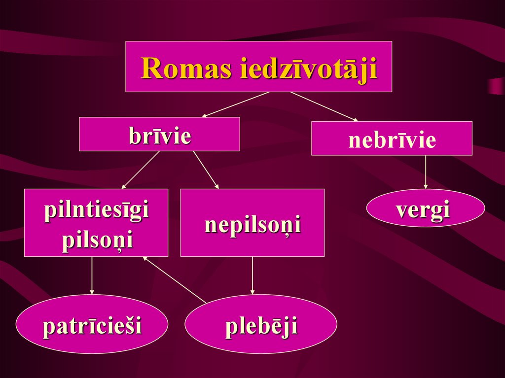 • Patrīcieši – dižciltīgi Romas pilsoņi, kuru