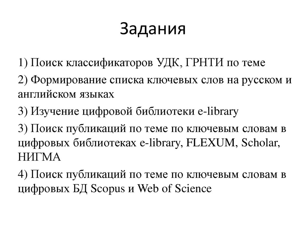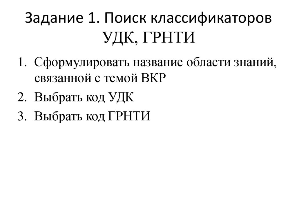 Задания1) Поиск классификаторов УДК, ГРНТИ по теме